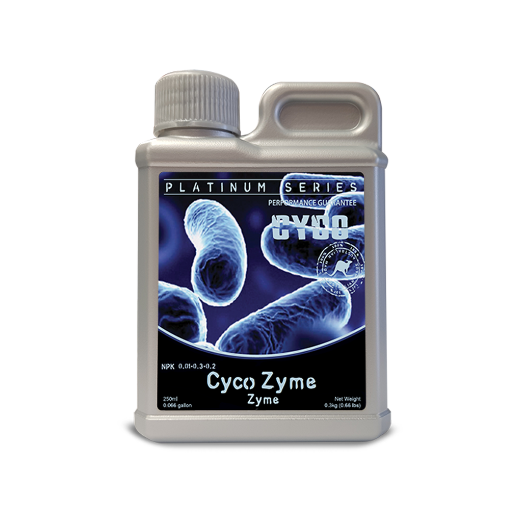 Cyco Zyme transforma materia vegetal como raíces muertas en azúcares, las que ayudan a aumentar la pared celular durante el estado vegetativo, y también incrementa el tamaño de los cogollos en el estado de floración.